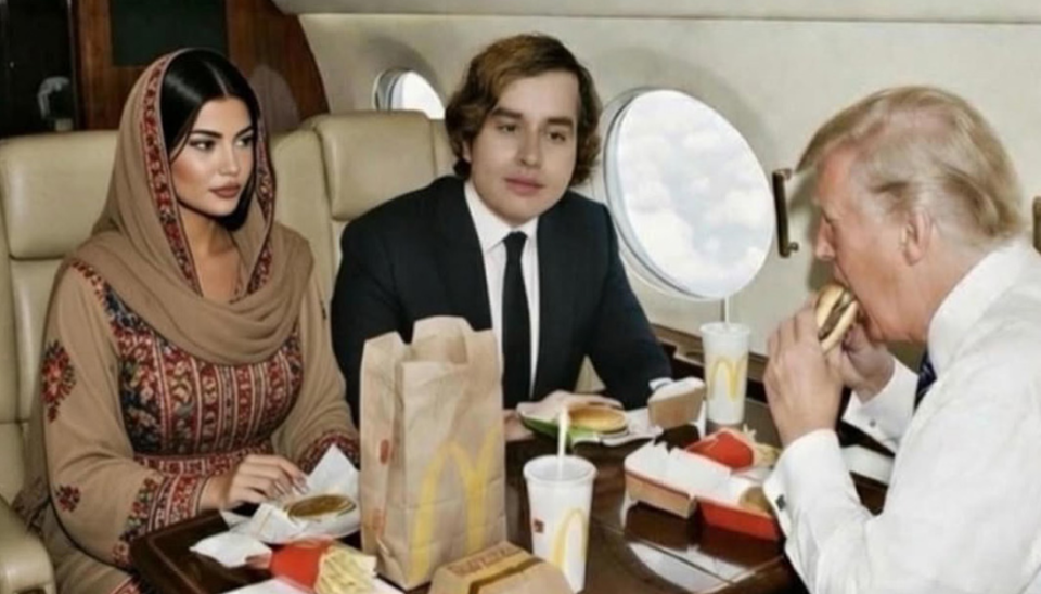 ناصر خان جان نے اپنی انسٹاگرام پوسٹ میں تصویر شیئر کی، جس میں وہ امریکی صدر کے ساتھ نجی جیٹ میں بیٹھے برگر اور فرائز کا لطف اٹھاتے نظر آ رہے ہیں۔