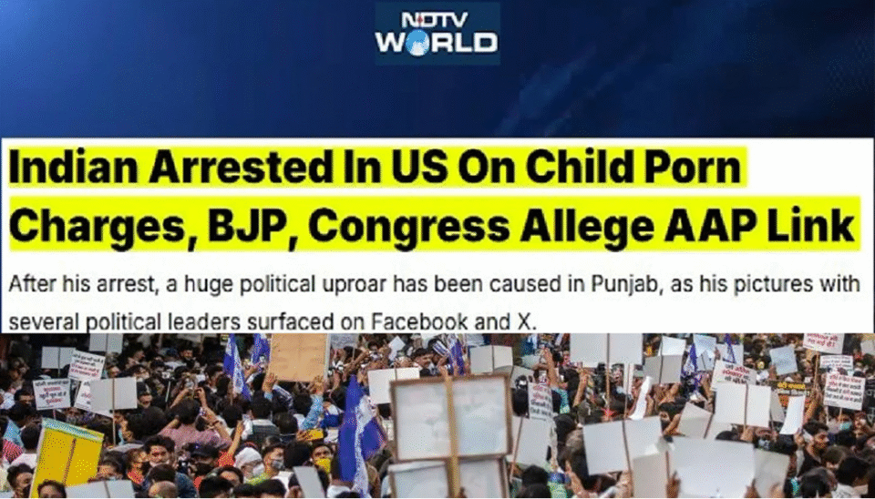 این ڈی ٹی وی کی رپورٹ کے مطابق امریکی ریاست میں بھارتی شہری گرجیت ملہی کو بچوں کی فحش ویڈیوز رکھنے کے الزام میں گرفتار کر لیا گیا، گرفتاری پر سوشل میڈیا پر بھارتی شہری کی سیاسی شخصیات کے ساتھ تصاویر وائرل ہو گئیں۔