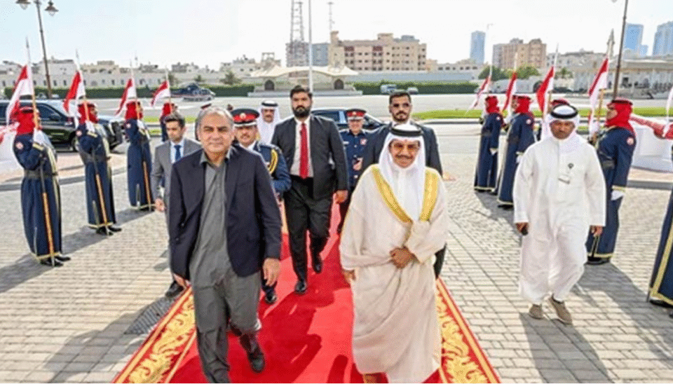 وفاقی وزیرداخلہ محسن نقوی ایک روزہ دورے پر بحرین کے دارالحکومت منامہ پہنچ گئے جہاں بحرینی وزیرداخلہ نے ان کا استقبال کیا، منامہ فورٹ آمد پر وزیرداخلہ کو گارڈ آف آنر پیش کیا گیا۔