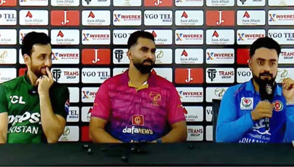 متحدہ عرب امارات میں سہ ملکی سیریز سے آغاز سے قبل تینوں ٹیموں کے کپتان نے پریس کانفرنس کی، جس میں افغانستان کے کپتان سے صحافی نے سوال کیا اور افغانستان کو ایشیا کی دوسری بہترین ٹی ٹوئنٹی ٹیم کہا۔
