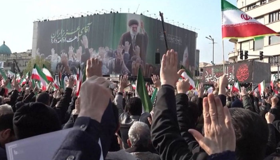 تہران کے انقلاب اسکوائر کے قریب نئے سپریم لیڈر مجتبیٰ خامنہ ای سے یکجہتی کے لیے نکالی گئی ریلی کے دوران امریکا اور اسرائیل نے حملہ کردیا۔